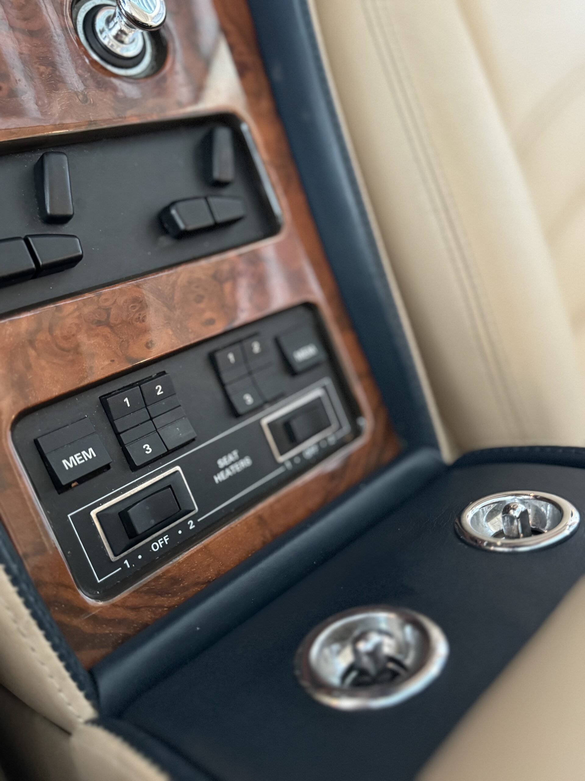 Mise en vente, cette Bentley provient d’une collection privée et en est à son troisième propriétaire depuis son importation en 2008. Originaire d’Italie, elle présente une combinaison raffinée de bleu nuit, de boiseries et de cuir Connolly Magnolia, offrant une configuration élégante et résolument anglaise. La voiture est dans un bel état général, entièrement conforme à l’origine. Carnet d’entretien, double des clés et notice du véhicule sont présents.